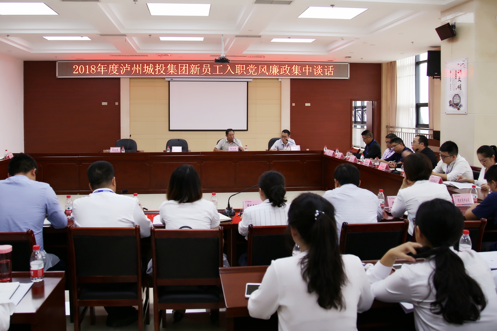 9月19日,瀘州城投集團(tuán)開展2018年度新員工入職黨風(fēng)廉政集中談話。瀘州城投集團(tuán)在家班子成員、部門負(fù)責(zé)人、子公司相關(guān)高管以及全體新員工參加了會(huì)議。