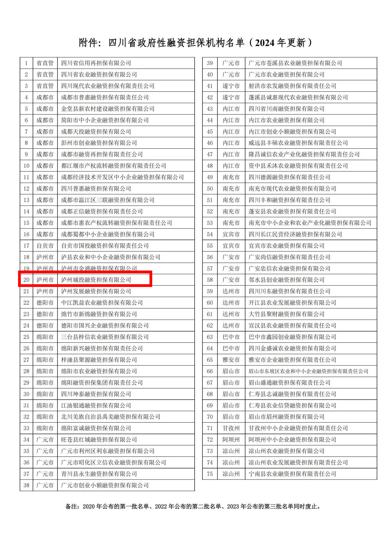 4月9日,《四川省政府性融資擔(dān)保機(jī)構(gòu)名單》(2024年更新)發(fā)布,瀘州市城市建設(shè)投資集團(tuán)有限公司(以下簡(jiǎn)稱(chēng)瀘州城投集團(tuán))下屬瀘州城投融資擔(dān)保有限公司(以下簡(jiǎn)稱(chēng)融資擔(dān)保公司)被確認(rèn)為四川省政府性融資擔(dān)保機(jī)構(gòu)。